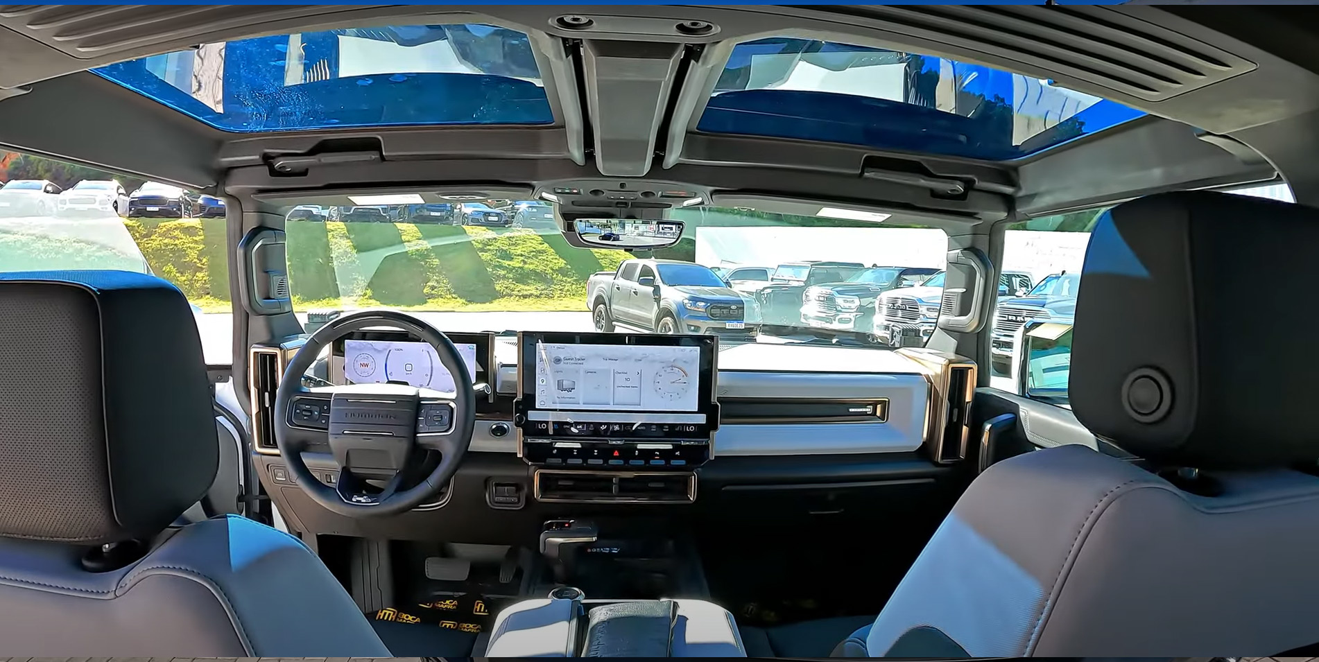 - Teto solar panorâmico: O Hummer EV vem com um teto solar panorâmico.